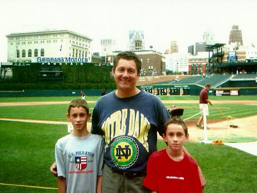 Maybe you're thinking "Hey, you forgot something", but unfortunately we did not make a trip in 2002, and just narrowly got one in this year! Throughout the summer we were talking about going, but for some now-forgotten reason, Mike did not want to go. So Dad planned a one day trip where we leave from Michigan and watch a game at Comerica Park. This was one of the more fancy parks, especially the entrance with the tiger statues. This trip was so late, I don't even know if it was still considered summer, August 31, 2003! Although Mike did not come, this was still one of the more memorable trips. This the Alomar brothers both played for us and Esteban Loaiza (ya remember him) got his 18th Win. He shut down the Tigers 6-1 and the Sox record went to 73-64 - 1st place! The Tigers had a miserable time, moving to 34-101, a laughable 38 games back of the Sox. This was a nice looking team, with C Lee, Big Hurt, Mags, Carl Everett, and PK in the middle of the lineup. Again, I caught a ball, but two this time, one during the game thrown over the Sox dugout, and one at the end of the game at th esame spot by, who I believe to be Carl Everett. To end the day we had another great memory, Mark and I ran the bases along with hundreds of other kids and we got a picture on the field. I still remember talking about how close to Toranto we were while driving...maybe one day.